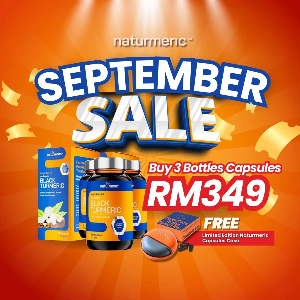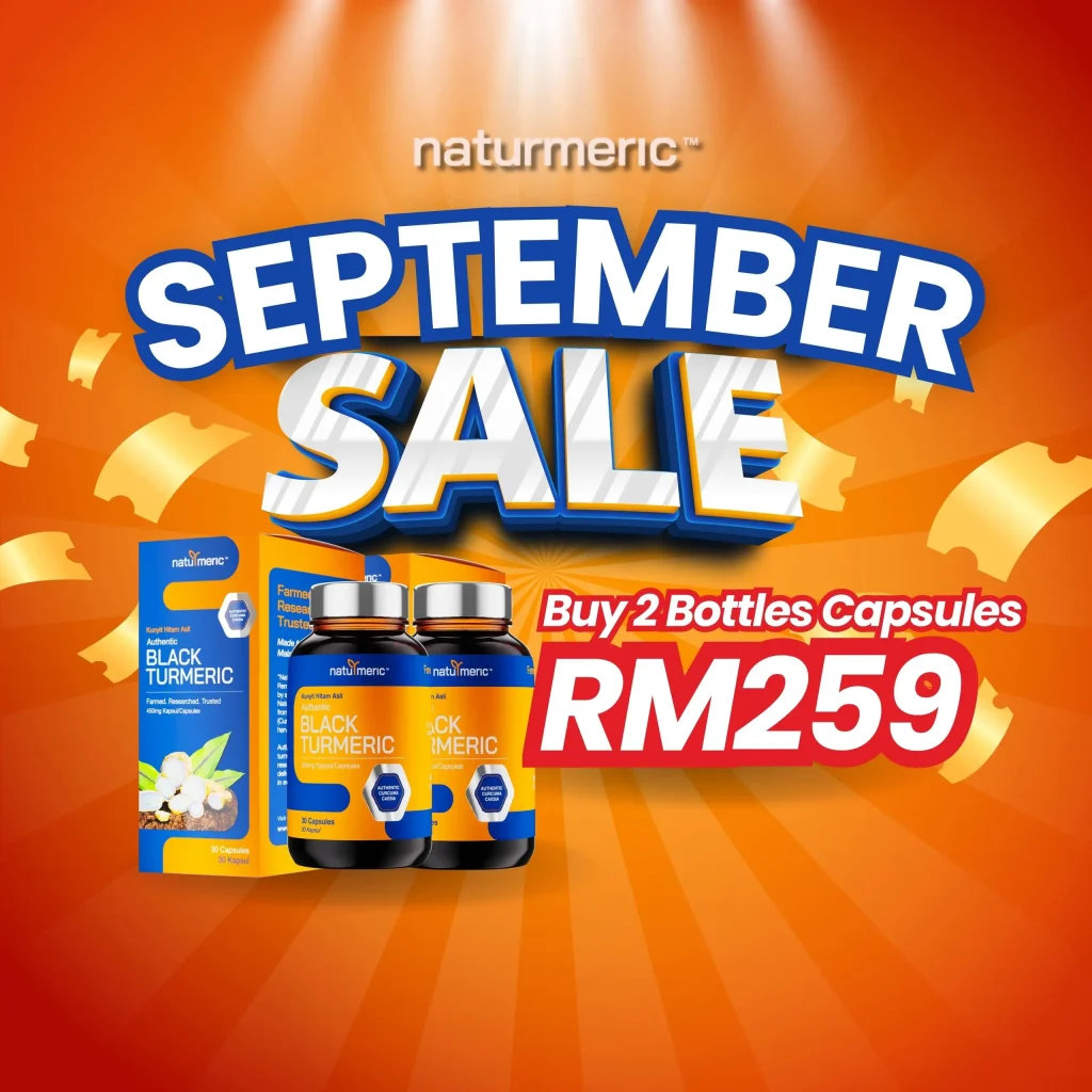 Black Turmeric dalam NATURMERIC mengandungi lebih kurang 10x lebih banyak curcuminoid berbanding kunyit biasa, menjadikannya lebih berkesan untuk melawan keradangan, sakit sendi, dan menurunkan asid urik.
